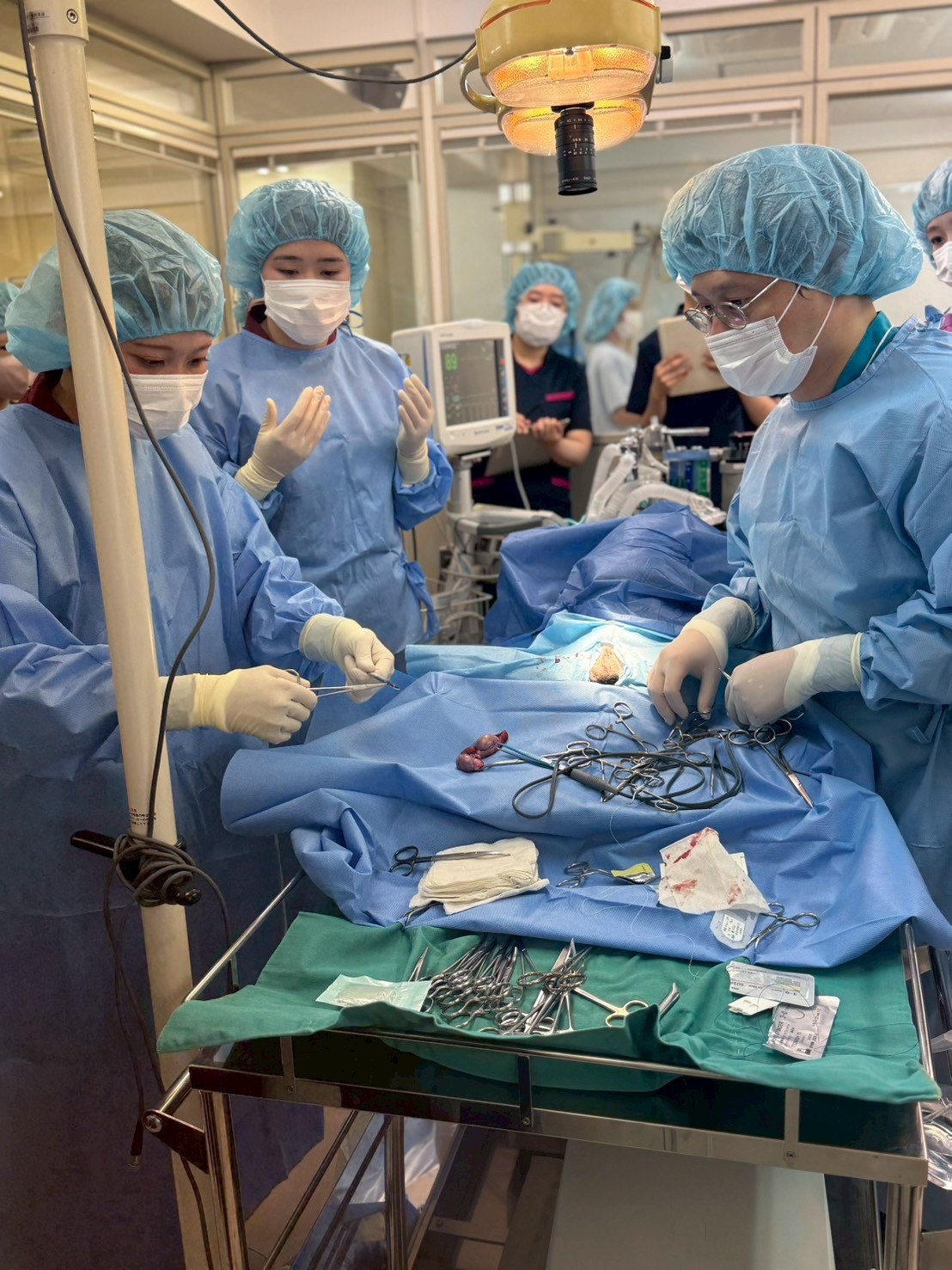 1年時は見学のみの手術実習でしたが、2年時からは学生自らが患部の毛刈り・消毒・手術補助など、立派に助手を務めました🏥